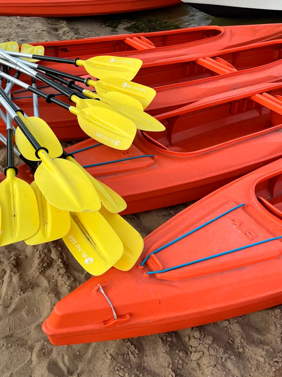 Используем пластиковые каяки и брезентовые байдарки грузоподъемностью до 300 кг. Их почти невозможно перевернуть или повредить. Плыть одно удовольствие.