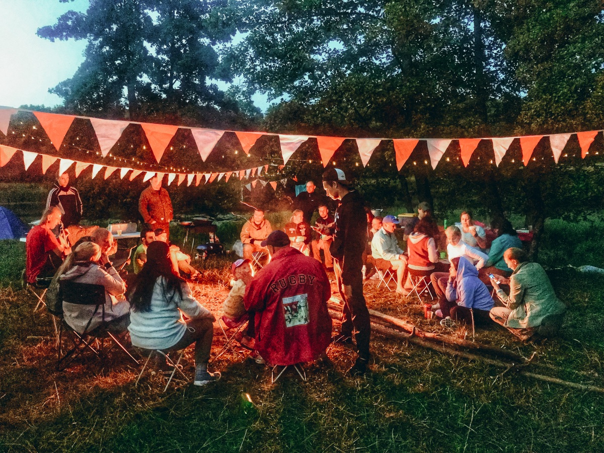 Проходим третий отрезок, ставим палатки, собираем дрова для костра, ужинаем, играем в активные игры или отдыхаем, перед сном поём песни под гитару.